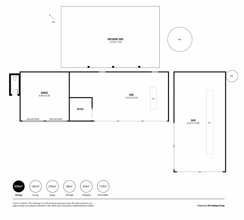 • Storage shed is 12m x 6m with concrete floor, power and pit. Fully enclosed with 2 sliding doors at the front, plus 2 sliding doors on the side.