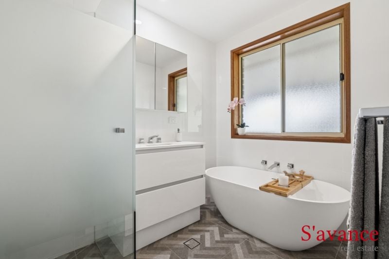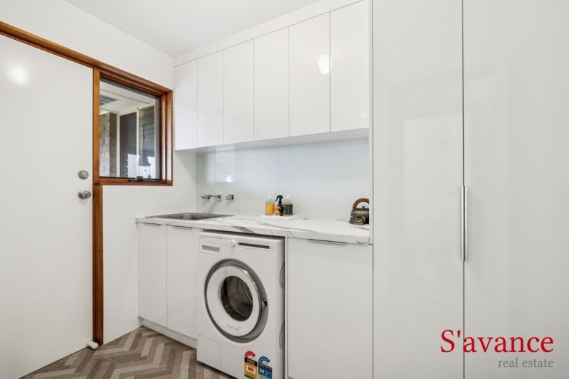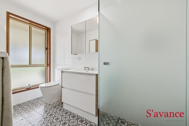 Rest and rejuvenation are paramount in the master suite, featuring large picture windows that frame serene garden views. Organizers will appreciate the spacious walk-in robe and the recently renovated ensuite, which includes an etched privacy shower screen and high-quality fixtures. Two additional bedrooms, both with built-in robes and abundant natural light, ensure comfort for family or guests. The main bathroom and laundry have also been tastefully upgraded, maintaining a consistent high standard throughout the home.
