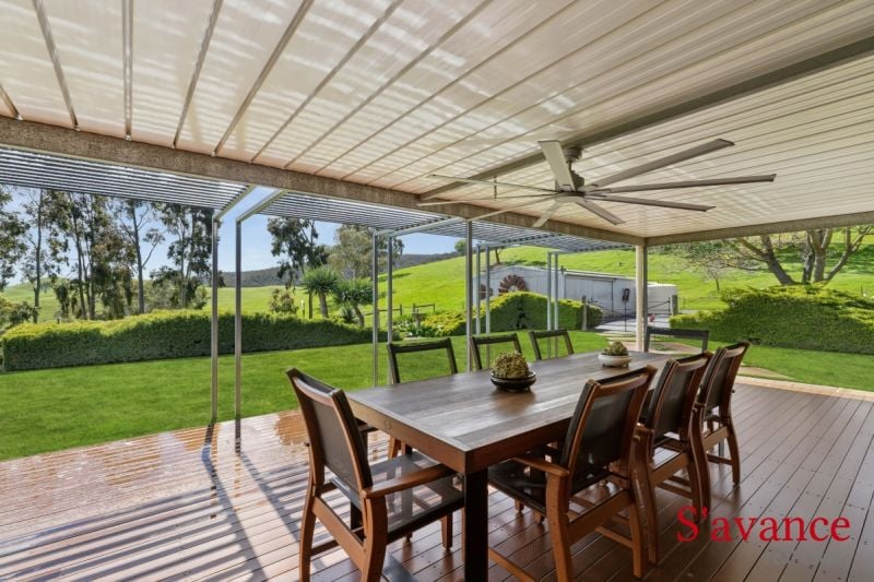 The outdoor lifestyle beckons with a superb entertaining area, ideal for summer barbecues, complete with roll-down blinds to shield you from the sun. Picture yourself sipping morning coffee under the expansive veranda, watching the local wildlife-it's just you and the stunning views. Nature enthusiasts will delight in the diverse wildlife that inhabits this property, from playful ringtail possums to majestic wedge-tailed eagles soaring overhead. The gardens are a tranquil haven, featuring a magnificent London plane tree that provides glorious summer shade - a perfect spot for enjoying a glass of wine or a quiet afternoon with a book.