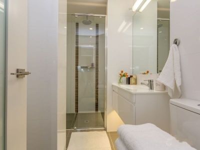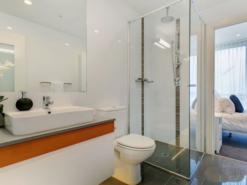 Each apartment is well designed with spacious open plan living. The quality 2-pac kitchens are modern and functional with gas cooktops, dishwashers, integrated fridge/freezers, and large benchtops, overlooking the stunning views over the city. The bathrooms are modern with ceiling to floor tiling, and many offer deep baths.