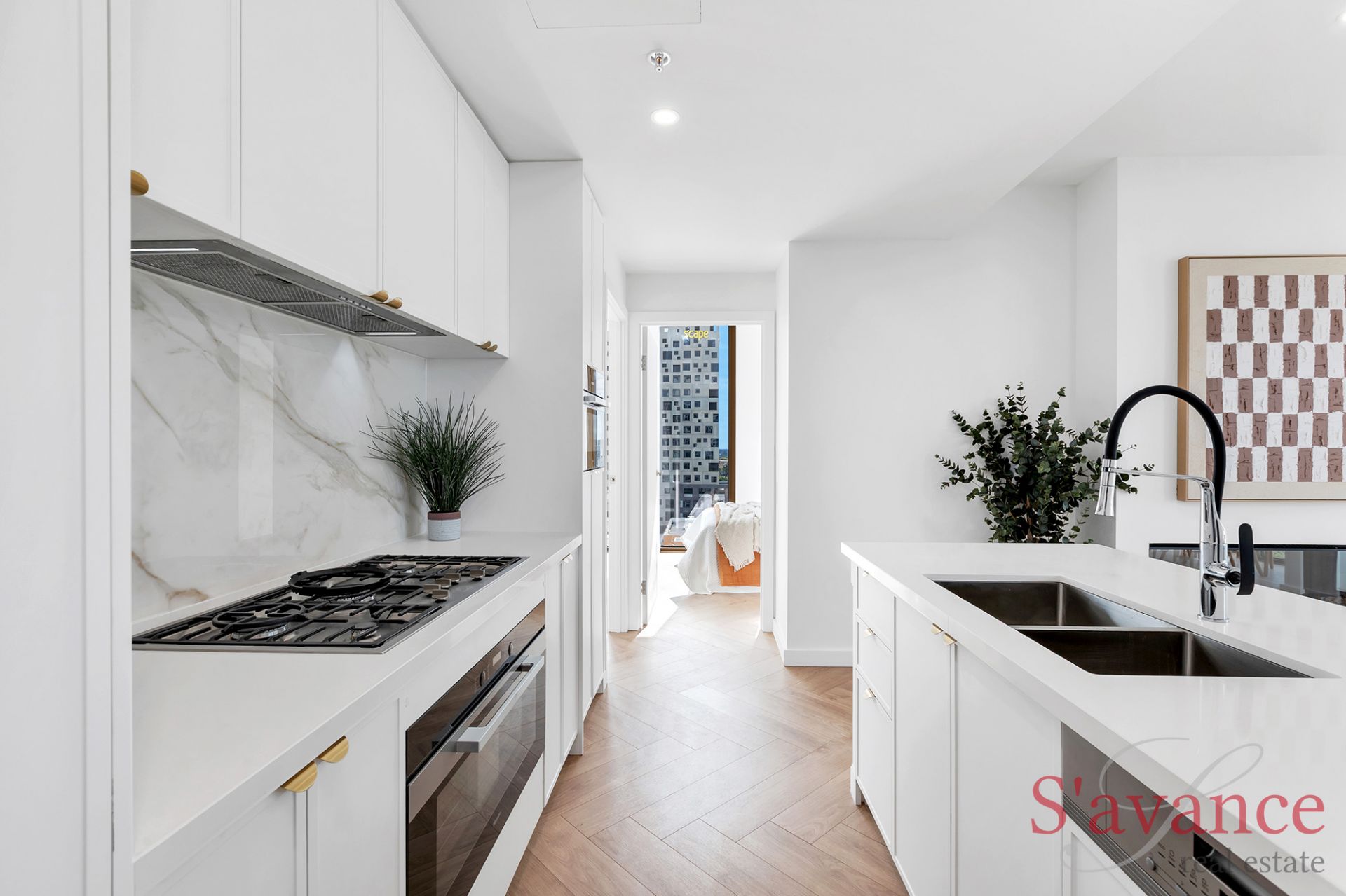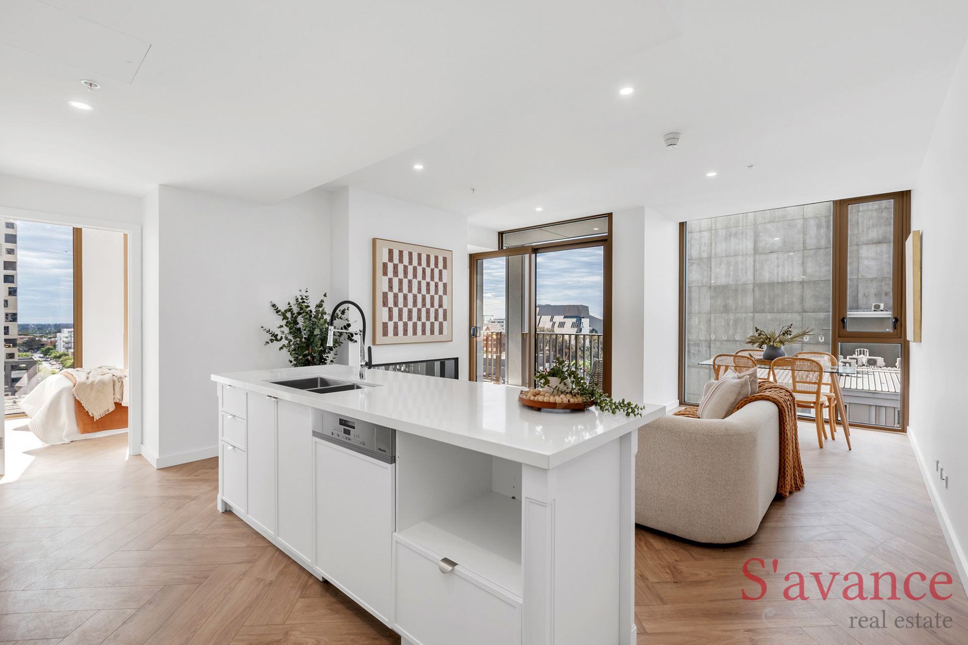 Designed to impress, this north-west facing apartment has a warm and sophisticated atmosphere, created by rich textures, beautiful colour schemes, and timeless Herringbone timber flooring.