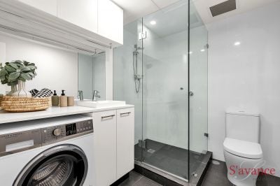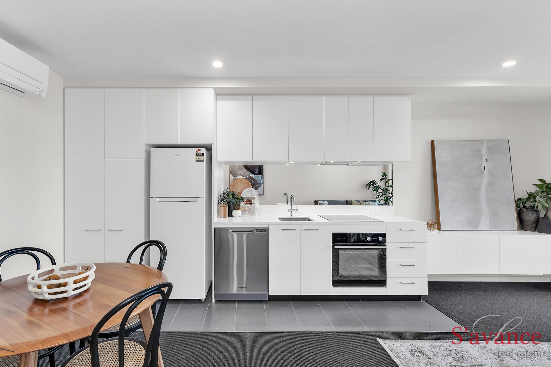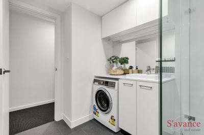 The kitchen comes with quality Fisher and Paykel appliances, including an induction cooktop, perfect for culinary enthusiasts. The fridge and washing machine/dryer are also included in the sale. In the living area, a sleek built-in floating entertainment unit with in-built power and tv arial connection, adds both style and functionality.