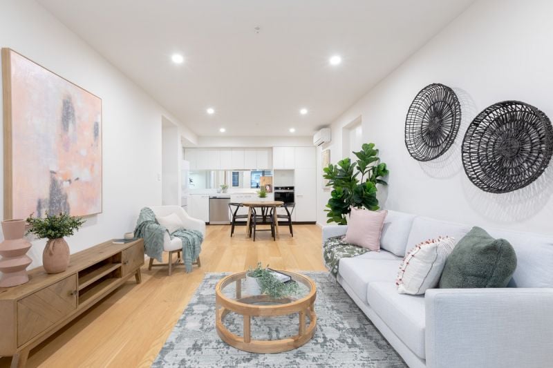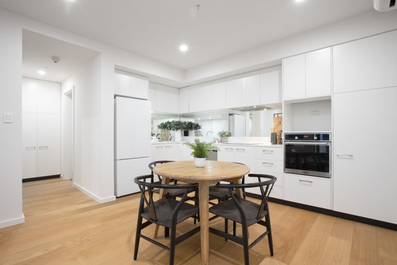 At the heart of the home is a bright, open-plan living and dining area highlighted by stylish floating floorboards and maintained at the perfect temperature year-round by split-system air conditioning. This space integrates seamlessly with the contemporary kitchen, which comes fully equipped with quality stainless steel appliances, creating a functional workspace for home cooking and entertaining.