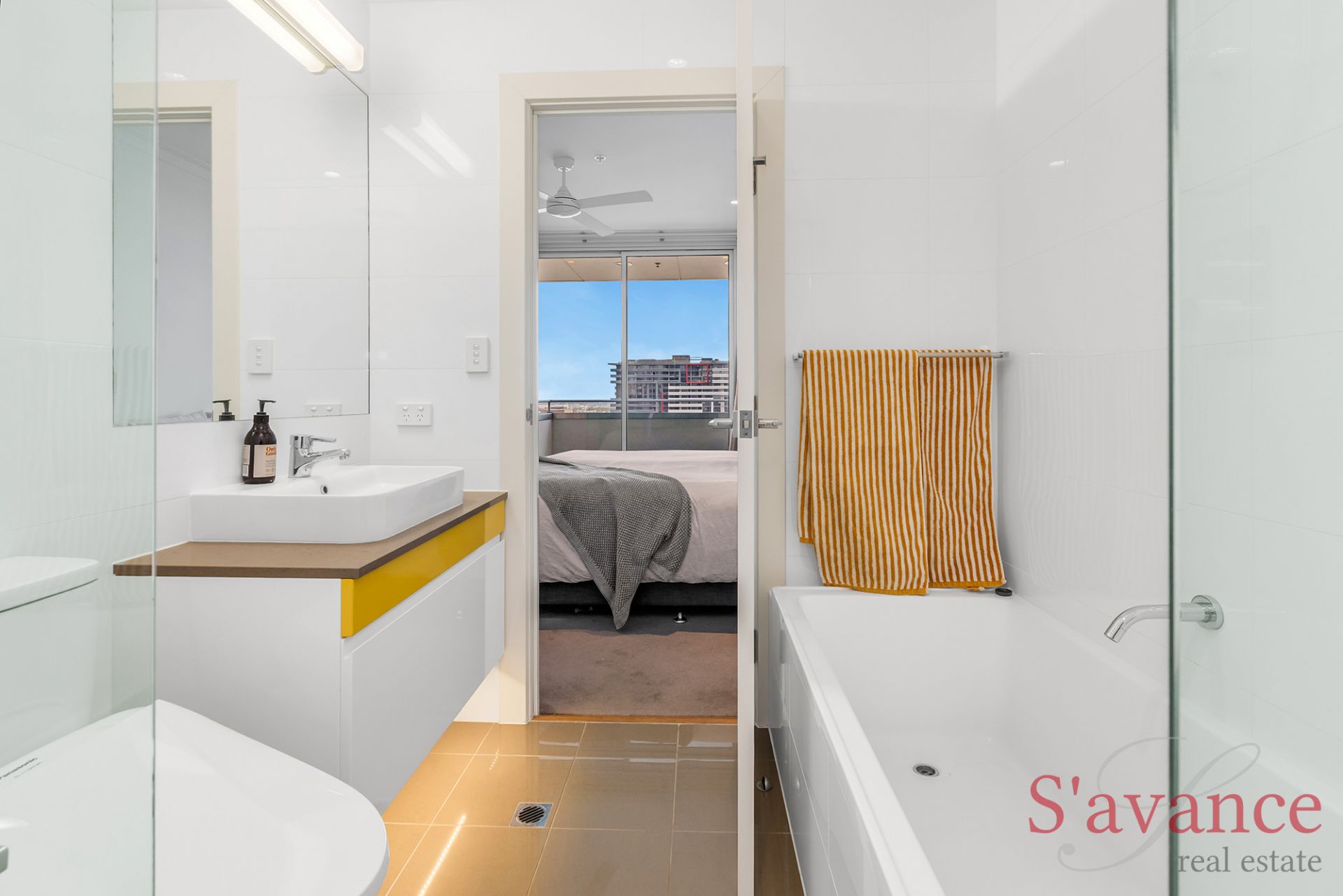 The master suite enjoys direct access to its own private balcony, offering a quiet outdoor retreat and an ideal place to start or end the day. The ensuite bathroom is beautifully finished with full-height tiling and premium fittings, including the comfort of a deep soaking bath, and bidet toilet.