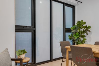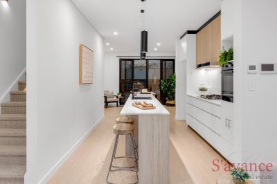 The heart of this exceptional property is on the first floor, where the light filled open-plan kitchen, living, and dining area is situated. Elegant timber floors flow beautifully throughout this level, creating a cohesive and airy atmosphere. The gourmet kitchen is a true highlight, featuring sleek stone benchtops, soft-close drawers, and high-quality Miele appliances, including a gas cooktop, perfect for those culinary enthusiasts. Large picture windows fill the space with natural light, and unique 'smart windows' in the dining area offer adjustable opaque privacy with the flick of a switch. The living area extends to a charming balcony, providing delightful views over the character-filled Halls Place and Weil Street, with its established stone cottages, trees, and community library.