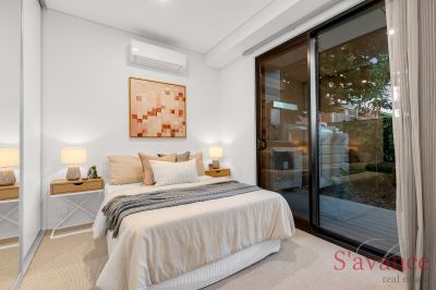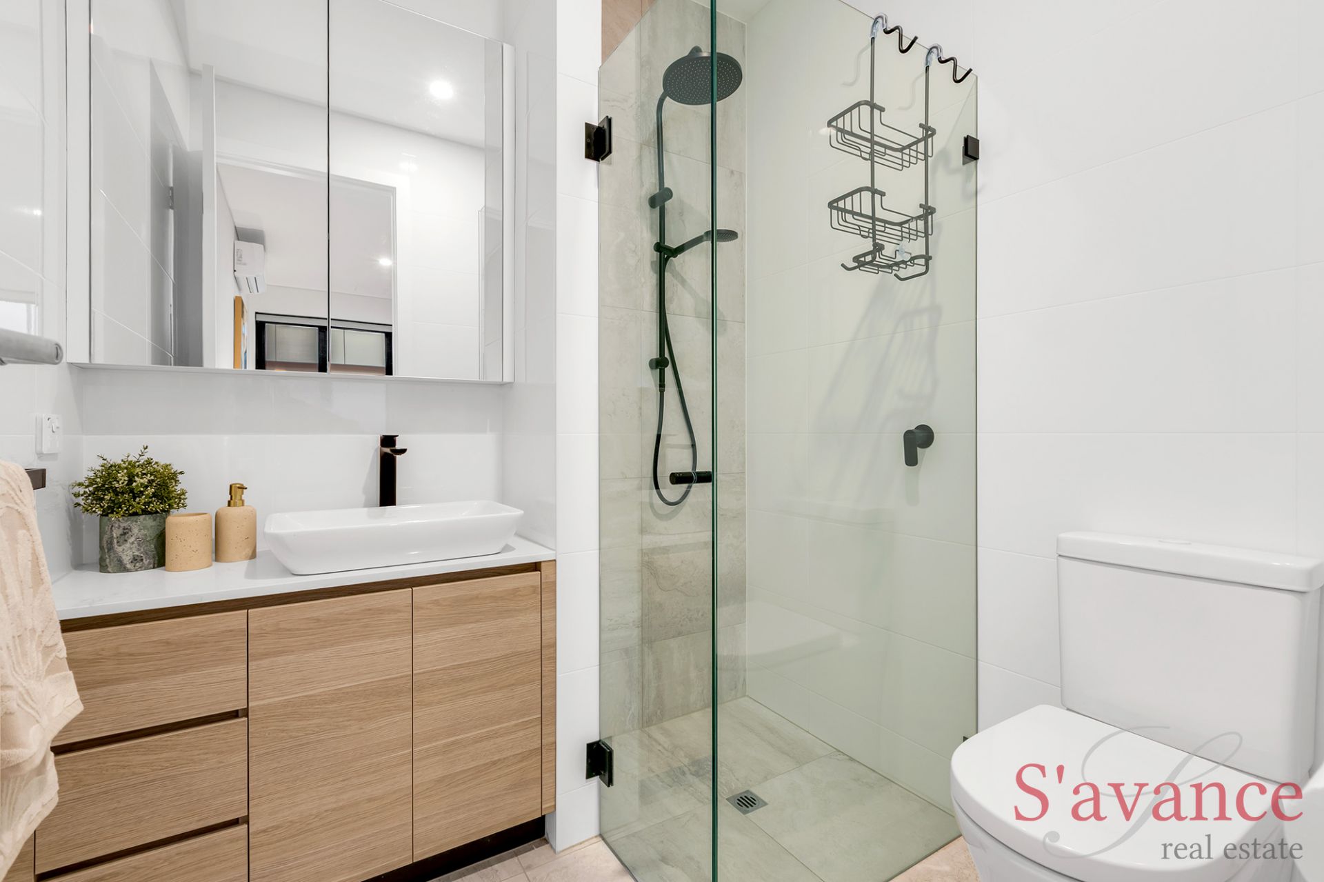 The sleeping quarters are thoughtfully distributed across the ground and second floors. The upper level hosts the main bedroom, a true retreat featuring a private ensuite bathroom and its own separate balcony. The second bedroom, also located on this level, benefits from a private ensuite and the added convenience of a 'smart window' for adjustable privacy. Both these bedrooms are generously sized and equipped with built-in robes. On the ground floor, the third double sized bedroom also features a built-in robe and offers direct access to the private front courtyard and garden.